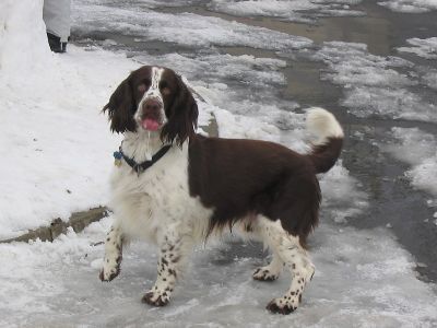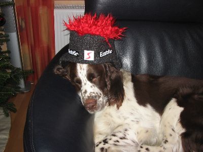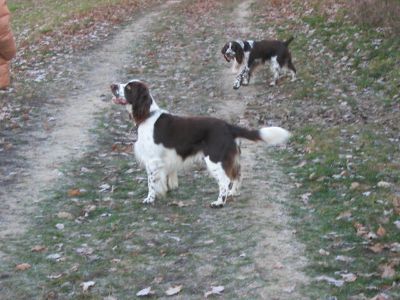Ja, gleich zwei Stück sind es ! Englische Springer Spaniel, vierzehn und zehn Jahre alt. Am liebsten toben sie im Feld oder auf den Wegen rund um die Hasenhecke. Das Wetter ist ihnen natürlich egal.
